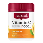 Red Seal 1000mg Vitamin C chewable tablets with orange flavour contains antioxidant support for the body's immune defences.