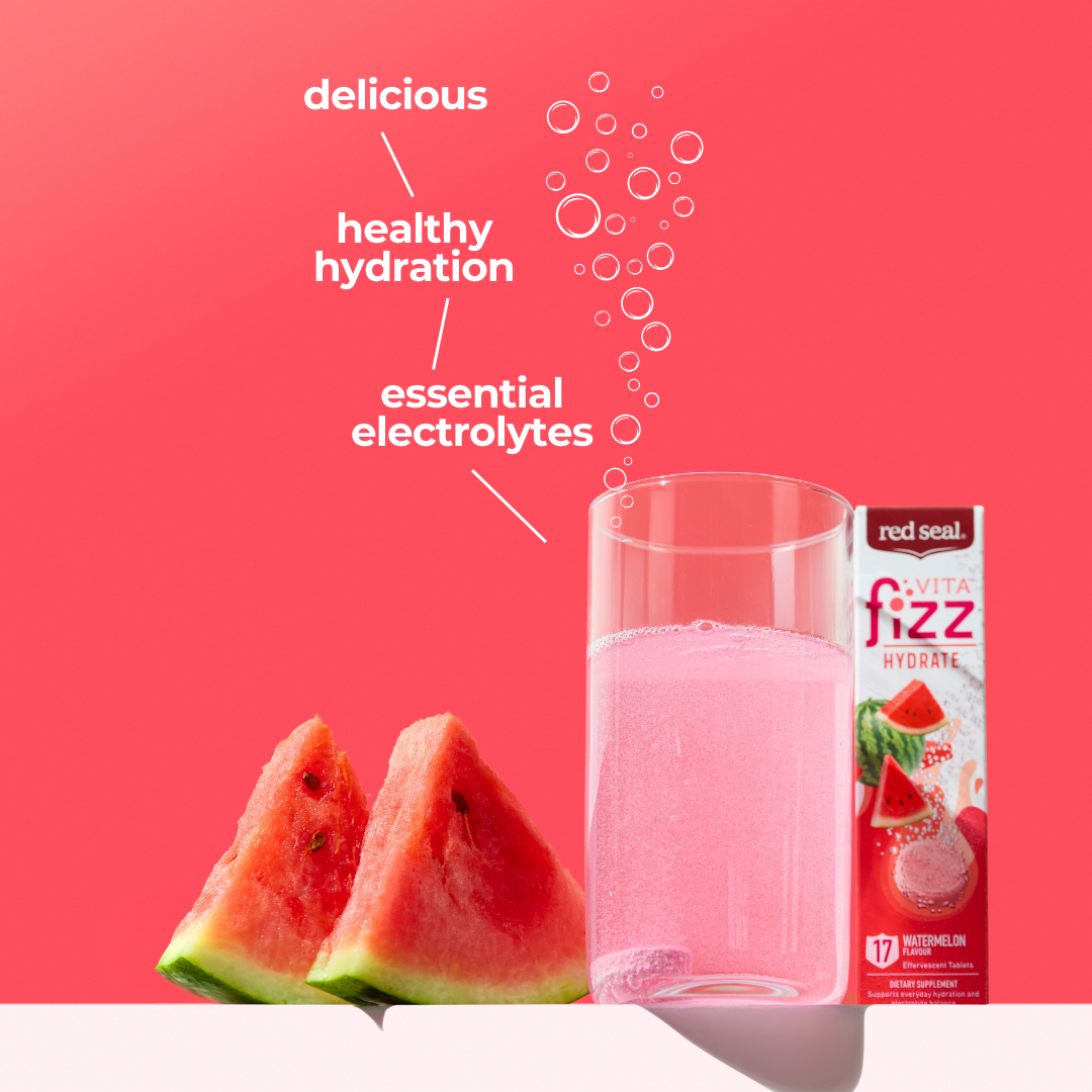 New VitaFizz Hydrate turns your everyday water into a refreshing watermelon‑flavoured drink with added electrolytes giving a delicious way to support healthy hydration and everyday wellbeing. Effervescent, low sugar, and easy to enjoy anytime - it’s hydration that fits your lifestyle.